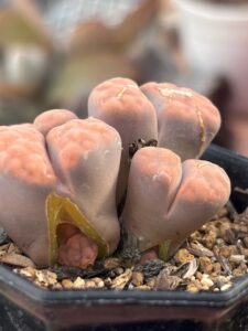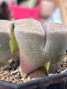 リトープス - 2026年1月25日 さきゅまるです。お越し頂きありがとうございます♪ 昨日何気に見つけたんだけどリトープス下に子供が!これ、上を割って助けてあげたほうがいいのん?と思いながら他のを見たら、(2枚目)ちゃんと、割れて出てきようとしてる。すごいねぇこんなごっついの割るなんて