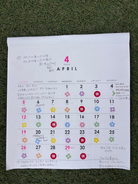 ハウスオープン当初から半日営業が所々ありましたが4月より全曜日、全日営業となります。