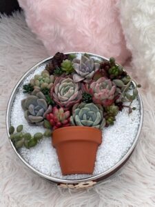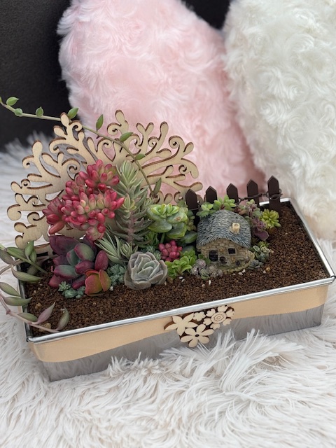 出張寄せ植え体験 - 2026年3月4日 さきゅまるです。お越し頂きありがとうございます♪ 今週末出張寄せ植え体験でサンプルを作りました٩(๑❛ᴗ❛๑)۶一つは粉ふるいを器に一つはパウンドケーキシンプルなのでリボン付き上から見たら絵になるようなパウンドは箱庭です。春を待ちながら〜なんて思ってたらいつのまにかもう春! 出張寄せ植え体験随時受付中ですがキット説明書苗セットも販売しています☺️(苗は変動あります)お気軽にお声がけください☺️#多肉植物 #多肉植物のある暮らし