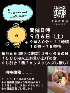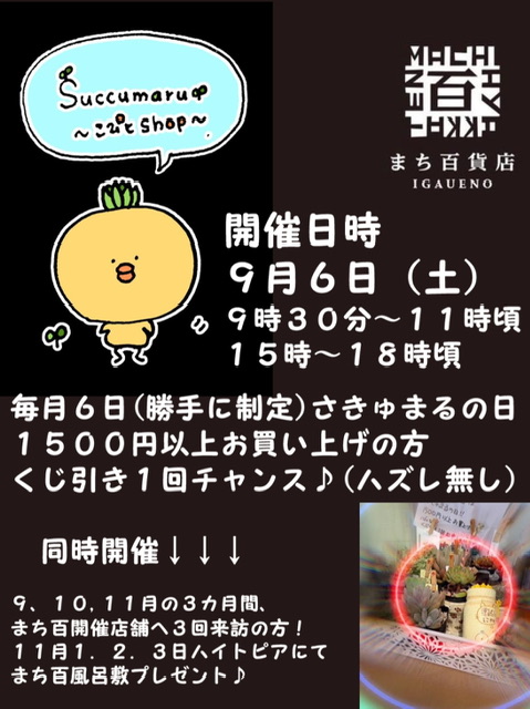 今月は第1土曜日ですので、まち百貨店と同時開催!まち百て、どんなもん?気になるわって方!この機会に是非遊びにきてね